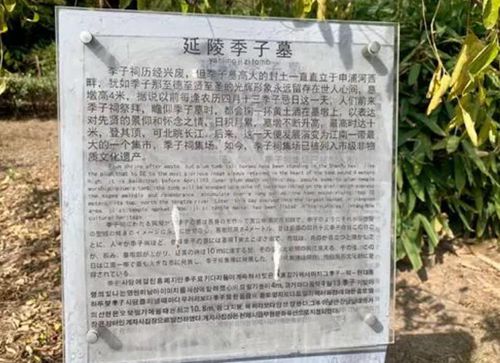 《春秋》载,季札于公元前485年死后葬在申港西南。后人在墓旁建季子祠,墓前立碑,传说碑铭"呜呼有吴延陵君子之墓"10个古篆是孔子所书。今申港中学所在地就是季子祠原址,季子墓高大的封土依然耸立在古老的申浦河西畔。