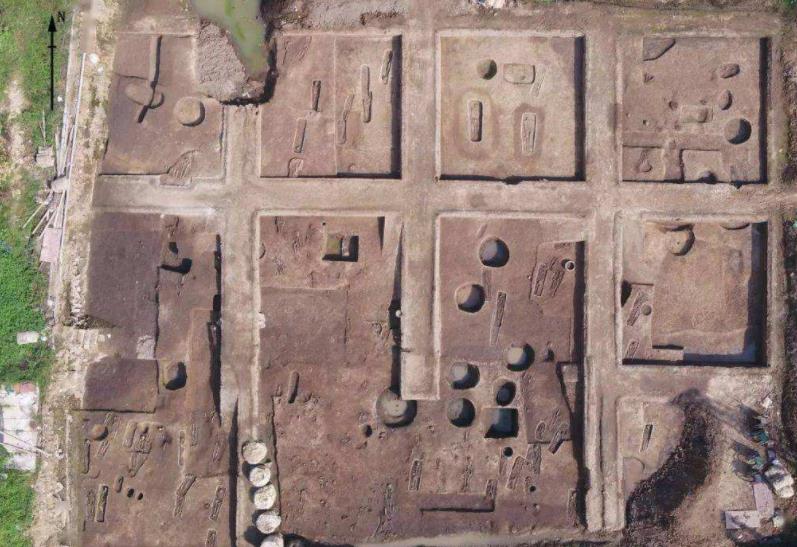 从遗址上多层次大面积分布的密集柱洞和灰坑,可推测这里采用立柱架梁、铺板建屋的栏杆式建筑,相当于今天的吊脚楼,与7000年前的河姆渡人相似。在地势低平,水网稠密的江南地区,吊脚楼可以防汛防湿,可见古代先民的智慧。