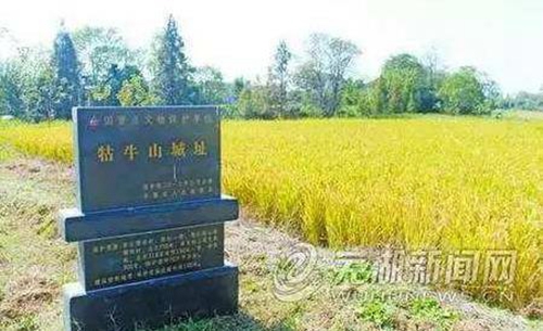 “牯牛山”是人工历经数十年乃至数百年堆建形成的高台地,逐而建成一座布局合理、规模宏大的古城。它形似浮在水中的牯牛,故而称之“牯牛山”。先民们充分利用了本地水资源优势,“以水为路,以船代车,以桥相连”,兴建了古城,古城亦叫“水城”。它面积约七十万平方米。如此规模及布局的古城在当时可谓大城市了。