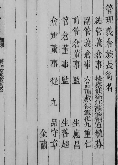 吴毓芬牵头成立了管理义仓的机构,自任总管义仓事,军功六品顶戴吴重仁任副管义仓事,监生吴应昌任前管仓董事,监生吴善超任管仓董事,监生吴守章、吴金兰任会办董事,负责管理义仓事务。
