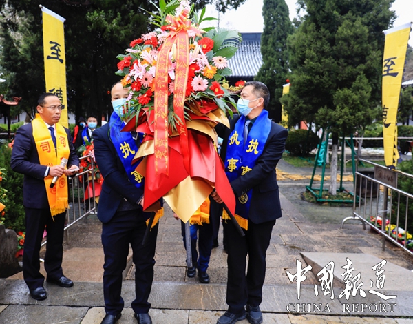 中国报道讯(通讯员吴刚虹)华夏千秋,泰伯永光,人文始祖,江南锦昌。2月8日(农历初八)上午8点,为纪念江南人文始祖泰伯公诞辰3306周年,无锡市新吴区泰伯文化研究会泰伯吴氏祖地宗亲总会在吴新会长的策划下,积极响应泰伯庙文保所“人数控制”要求,精心布局,由祖地宗亲总会携常州宗亲分会、江阴分会、宜兴分会、常熟分会、福建宗贤等50人代表,伴着雄壮的吴歌乐曲,在无锡新吴区梅村镇“泰伯庙”隆重举行。