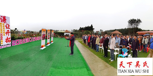 天下吴氏网讯(海南工作站吴乾山报道)2月9日,春雨绵绵,来自海南省海口市、琼海市、文昌市、儋州市、澄迈县、临高县、定安县、屯昌县、陵水县等市县的吴氏宗亲代表350多人,聚集在海口三角梅共享农庄,出席由海口市吴贤秀文化研究会主办的2022纪念吴氏始祖泰伯公诞辰3306周年庆典活动。
