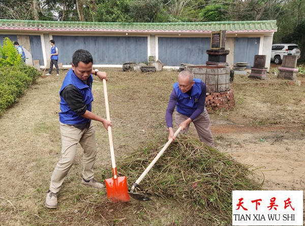 志愿者服务队以饱满的精神神采奕奕投入对始祖吴贤秀公墓园清除杂乱大扫除卫生。这是3月1日后通过省级文物保护单位吴贤秀墓园整体提升保护修缮工作启动的第一步。