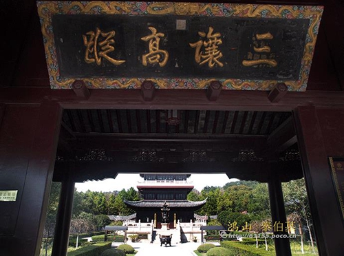 新中国成立后,有原国家副主席荣毅仁题赠“锡邑之光”匾额;原中共中央宣传部长陆定一题赠“泰伯庙”匾额。泰伯墓由吴郡太守糜豹督办始建于东汉永兴二年(154),历代都有修建。前有主殿仰止阁四层高19米,供泰伯冕旒朝笏铜像,两柱有联:“千秋让德长存,祖基重光,鸿山胜景扬中外;万众英贤共仰,世家首列,青史高风颂古今。”
