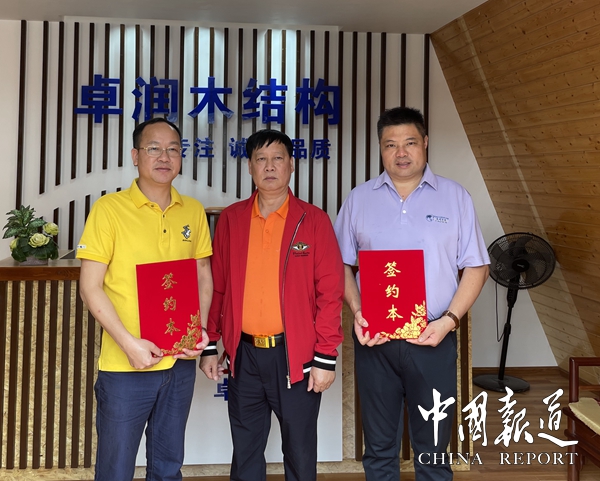 据悉,这次签约仪式,是双方签订的第二批次再投入30栋木屋别墅合作。(广东中山市卓美润木结构科技有限公司供图)