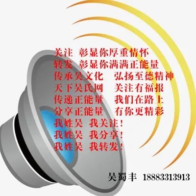 我是吴氏好儿郎,仁爱谦让传万代。相约天下吴氏网,因为有你更精彩!