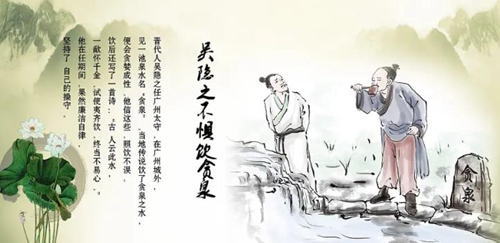 吴隐之不信这个邪,到广州后,他对亲人说:“不见可欲,使心不乱。越岭丧清,吾知之矣。”为了表明立志清廉,他特意来到贪泉,掬水而饮,并赋诗为志:“古人云此水,一歃怀千金。试使夷齐饮,终当不易心”。意思是:人们都说喝了这泉水,就会贪财爱宝,假若让伯夷叔齐那样品行高洁的人喝了,我想终究不会改变那颗廉洁的本心。