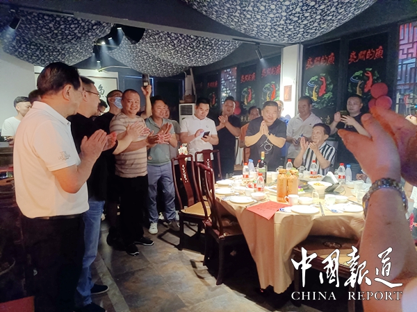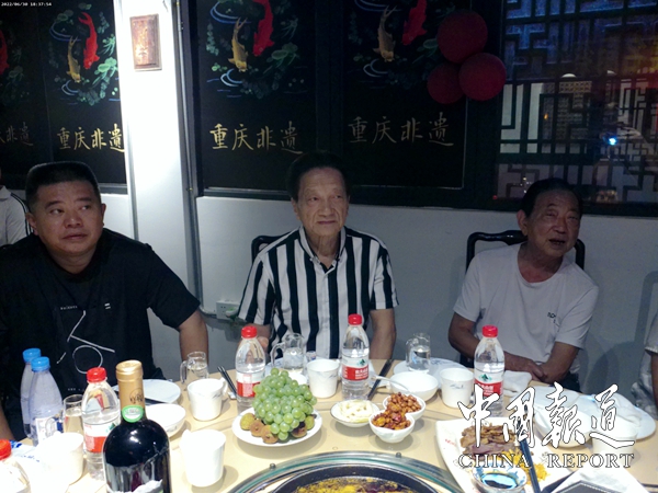 中国报道讯(吴蜀丰 报道)6月30日,重庆市非物质文化遗产德元酸梅汤传承人蔡雄在重庆东水门盛开的鱼非遗川菜馆高兴地收下最后一位“关门”弟子--周相德,重庆渝奉味业董事长、重庆蔡门食品有限公司董事长。
