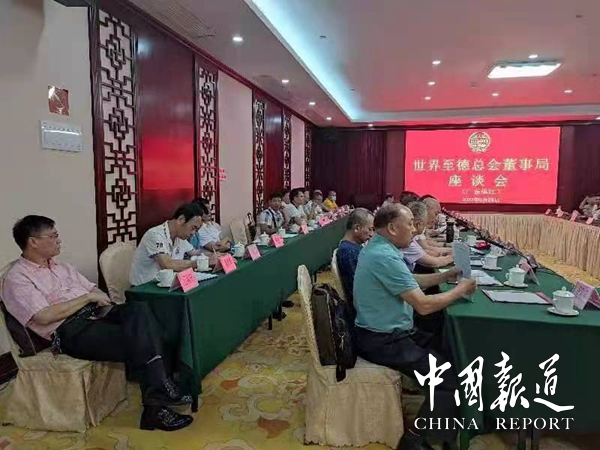 中国报道讯(通讯员 程瑞华)6月28日,世界至德总会董事局在广东省湛江市海滨宾馆举行“助推文化经济产业发展”座谈会,来自黑龙江、台湾省、澳门特别行政区、多米尼加、阿尔及利亚的分会、联会及国内各团体80名负责人,陈浪沛、贺君、吴寿炎、汪椿涛、吴仲奇、吴明祥、邢登科、吴惠生、吴泽波、蔡添裕、吴利勋等人以视频讲话、电话及微信,对座谈会成功召开表示祝贺。