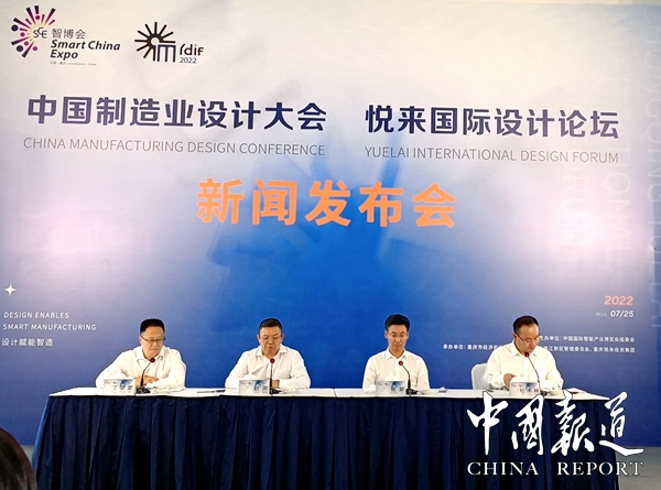 中国报道讯(吴蜀丰 报道)7月25日,2022中国制造业设计大会重庆悦来国际设计论坛新闻发布会在悦来国际会展城悦·设创艺展示中心举行。本次发布会由中国国际智能产业博览会组委会主办,重庆市经济和信息化委员会、重庆两江新区管理委员会、重庆悦来投资集团有限公司共同承办,活动为期3天,7月27日至29日止。