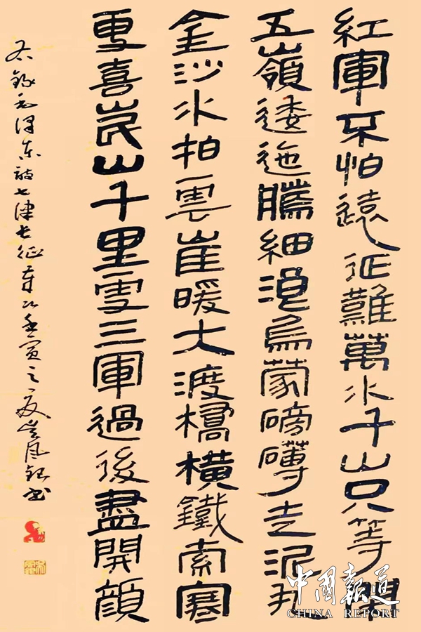 中国报道讯(吴蜀丰报道)吴风银,又名吴凤银,斋号疯人斋主、疯爷堂主。笔名金艮。1956年出生,黑龙江省大庆市人。深圳国学与吴文化书法院院长。中国当代实力派书法家。中国书法家协会会员,黑龙江省书法家协会会员,中国石油作家协会会员。独创了两种新奇唯美、独树一帜的书法书体“吴体隶书”和“吴体隶变”,并亲自编纂出版了《吴体隶书吴体隶变书法字典》。其书法作品被国内外友人和藏家收藏。