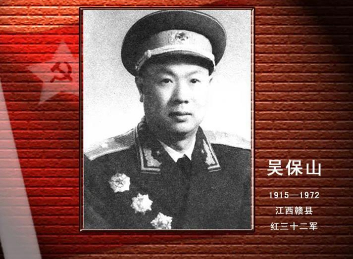吴保山(1915-1972),江西省赣县人。是原福州军区副政委,他1930年参加革命,1934年由团转党。参加过土地革命战争、长征、抗日战争、解放战争和抗美援朝。建国后担任了沈阳军区政治部主任、副政委、总参谋部三部政委等职。