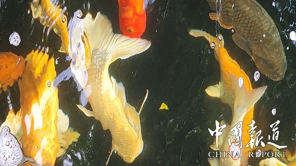 中国报道讯(通讯员岑福山麦国新)在东兰县长乐宫景区内,极具观赏性的鲤鱼池格外引人注目,成为景区新靓点,吸引游客们争先恐后用手机记录池内鲤鱼活泼可爱的场景。一条条锦鲤体格健美、色彩艳丽、花纹多变、泳姿雄然,具极高的观赏和饲养价值。