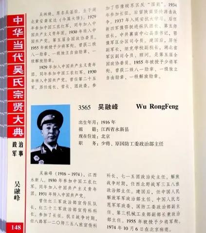 吴融锋(1916—1974)江西永新县人。一九三0年参加中国工农红军,同年加入中国共产主义青年团,一九三一年转入中国共产党