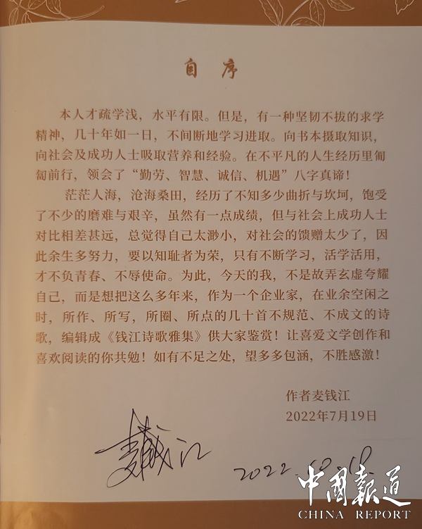 麦钱江在签赠会上说“生活不止眼前的苟且、还有诗和远方、感谢大家的关心、支持和鼓励”。