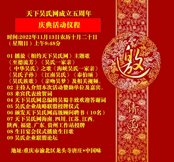 天下吴氏网五周年庆(2017年--2022年)邀请函