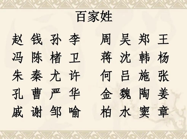 赵钱孙李,周吴郑王。冯陈褚卫,蒋沈韩杨。
