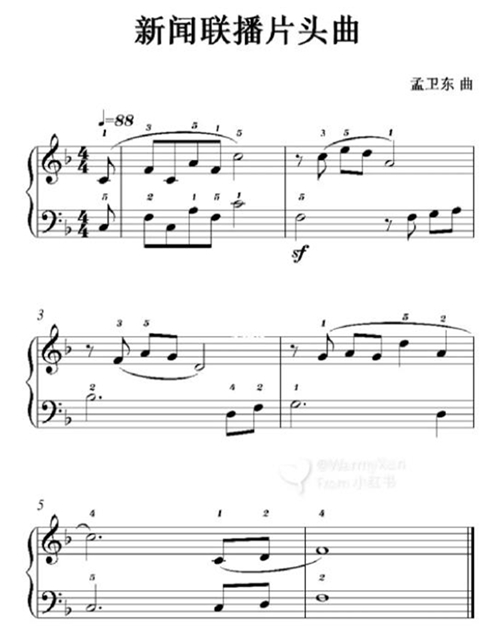 在中国名流谱上,作曲家孟卫东的名字是与中央电视台《新闻联播》开始曲一起载入史册的。这首短短19秒的乐曲自从1988年3月从孟卫东的手中诞生并被《新闻联播》启用为开始曲之后,便以每天一遍的高播出频率在中央电视台的黄金时间、金牌栏目里播放,至今没有更换过,孟卫东因此被人们誉作“你每天都能听到他的作品”的作曲家。
