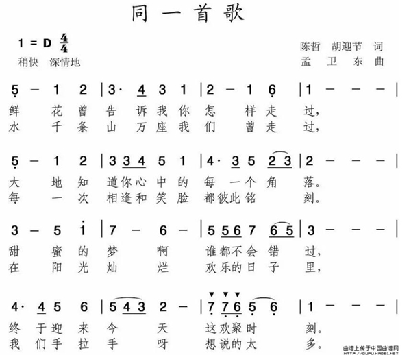 孟卫东曾应中央电视台高级编导邓在军的邀请为十二集音乐风光电视片《黄山》创作歌曲,正好我也有一首《连心锁》被收入片中,这样我们就有了以文会友般的结缘。孟卫东对我说过:“我爱黄山,因为我爱美丽和壮观”,我知道这句话并不只是单指黄山而言的,更像是他的艺术追求宣言,因为他的音乐作品大多充满著“美丽和壮观”的韵味……我曾试探性地问过他自己最满意的创作歌曲是哪一首?他说是《同一首歌》,这个回答我是非常满意的,因为这确实是一首超越时空、久经考验的完美佳作,既“美丽”又“壮观”。打从那年北京亚运会唱响、唱红之后,至今依然久唱不衰,《同一首歌》甚至被中央电视台文艺部用作大型系列歌会的总题目和主题歌,还在冲击、震撼著广大歌迷的心。孟卫东:一位你熟悉而又陌生的作曲家,你每天都能听到他的作品。