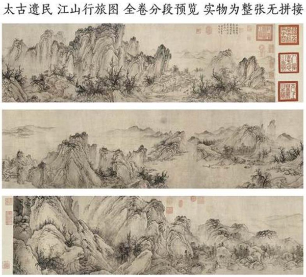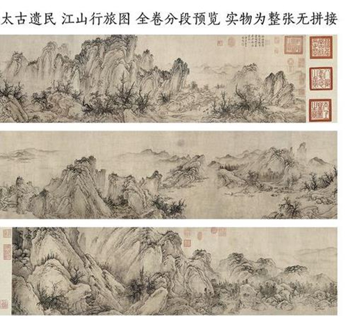 吴宏 秋山行旅图【名称】清 吴宏 秋山行旅图(部分)【年代】清代【简介】长卷,纸本,设色,纵23.5厘米,横1242厘米。此图画山重水复,山石岐螬,村庄屋字依山傍水,错落俨然于树丛,赶路的车队,人马也匆匆于道上。笔墨纵横,风格绢秀。