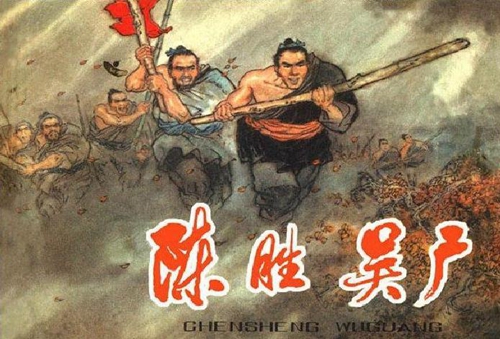 吴广见时机基本成熟,于是趁两个押送士卒的军官喝醉,故意扬言逃跑,以激怒押送他们赴边的将尉。喝得醉醺醺的两个将尉果然大怒,责骂和鞭打吴广,引起士兵们不满,群起而哄之。吴广奋起夺下一名将尉佩剑将其杀死,陈胜也乘势杀了另外一名将尉。随后,陈胜把900名戎卒召集在一起,大声说道:“我们在这里遇上了大雨,已不能按期抵达渔阳了,而误了期限大家都要被斩杀,即便侥幸不被砍头,戍守边塞十分之六七的人也要送命。再说好汉不死便罢,要死就要取得大名声啊!王侯将相难道有天生的贵种吗?“