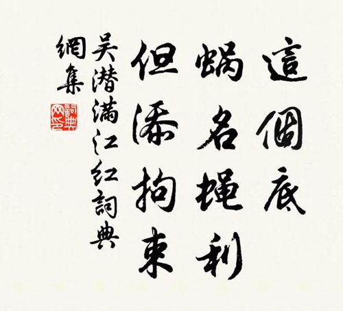 写景词 吴潜的写景之词中比较著名的有《满江红·豫章滕王阁》,该词作于淳祐七年(1247年)春夏,吴潜遭罢,改任福建安抚使,前往福州道经南昌时所作。“万里西风,吹我上、滕王高阁。”起笔着题,“万里”用得极有气势,“吹”极为生动,写出了登临高阁时的兴致。上阙景物写得重点突出、层次分明,又处处映照着《滕王阁序》,融通今古,拉长视野。这段景物描写明显地浸染着作者的情绪,如“征帆木未”就包含着前途渺茫之感,而“今犹昨”则蕴含着物是人非的深沉感慨,并且引出下片的抒怀。下面由近及远,回首往事。“岁月无多人易老,乾坤虽大愁难着。”他已入老境,有志难伸,而社稷颠危、国难深重。以固态体积状愁,既给人以形之大、又给人以质之重的感觉,想象奇特。上面都是登高临景惹起的对往事的回忆和无限慨叹,由此抒发出的郁闷不平之气,亦是自然而然、水到渠成。“向黄昏、断送客魂消,城头角。”结句哀思绵绵,刚柔相济,益显其沉痛悲郁。自王勃大作问世以来,吴潜此作未与时消没而留存至今,除了其写景的精要、生动、清畅外,就因为它真实地抒写了一个失意政治家的人生悲感和忧愤。仅就抒情写怀而言,该词也是沉郁动人的。