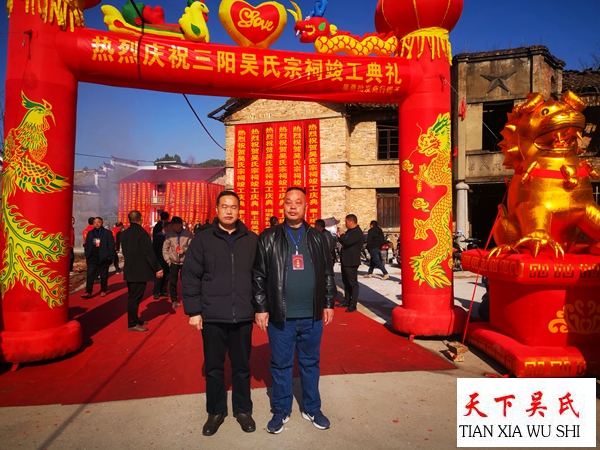 天下吴氏网讯(贵州工作站报道)日前,贵州吴氏宗亲吴文化研究有限公司究有限公司主席、老吴台集团董事局主席吴学强等负责人应邀参加江西宜春袁州区三阳镇潘坊村吴氏宗祠竣工庆典活动。