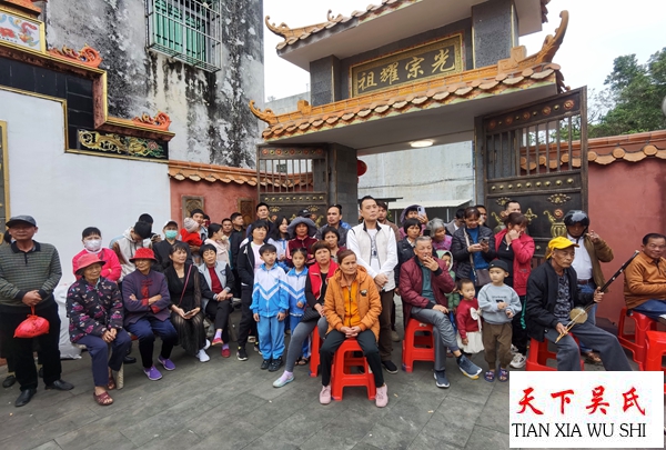 2月15日,来自永茅村、永发村、南洋村、瑞溪市等支系200多人,特邀嘉宾:世界至德总会董事局常委吴文元,海口市吴贤秀文化研究会,荣誉会长吴名扬,名誉会长吴川富,研究会党支部书记吴坤清,常务副会长吴富荣、吴坤导、吴孝权,副会长吴雄兴、吴明海、吴淑波、吴淑珍及吴岳汉、吴群、吴崇胜、吴钟贵、吴挺权等参加在永发村吴氏祠堂隆重举行祭祠叩拜庆典活动!