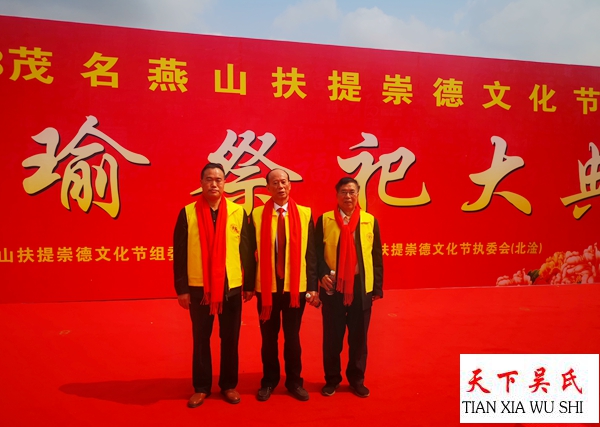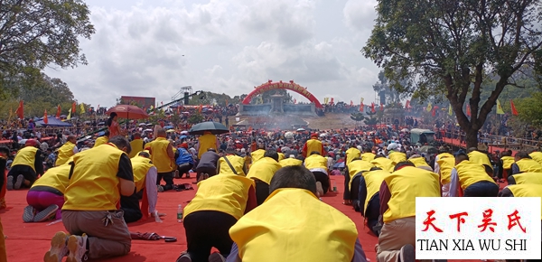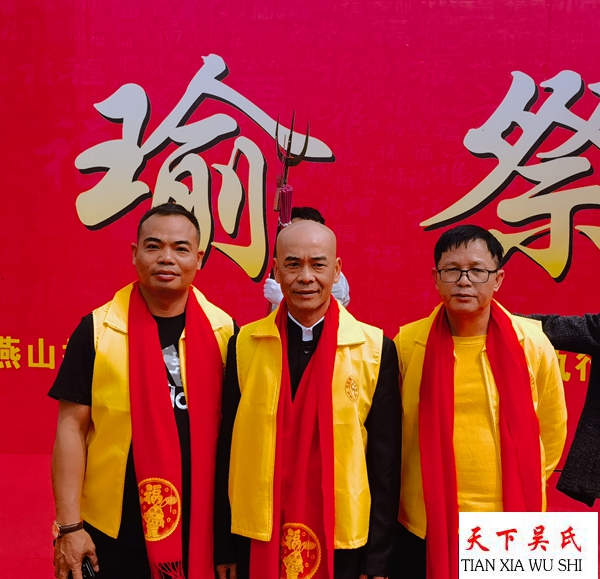 燕山墓园上,中华吴氏宗亲总会主席、天下吴氏网福建工作站站长吴文富,贵州吴氏宗亲吴文化研究会主席、世界至德总会常委常务副主席、贵州老吴台集团董事局主席贵州吴文化研究会主席天下吴氏网贵州工作站长吴学强,浙江吴文化吴文化研究会执行会长、天下吴氏网浙江工作站站长吴松金天下吴氏网广东珠三角工作站站长吴占标,执行站长吴昌禄及来自五湖四海的嘉宾代表身穿黄色服装,佩带红色绶带肃然而立。这里,一场盛大的祭拜大典即将开启。