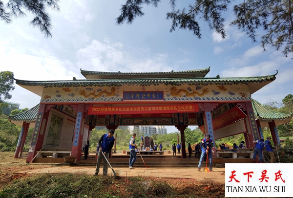 天下吴氏网讯(海南工作站吴乾山报道)清明节即将来临之际,为了海内外,迁琼始祖吴贤秀公后裔子孙,创造优美的扫墓祭祀氛围。海南省海口市吴贤秀文化研究会积极组织文化志愿者对吴贤秀公墓(文化公园)进行全面清洁卫生。