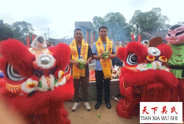 10点整,祭祀仪式开始,锣鼓喧天,狮舞威风,及第塔雁,题名锡辉,晏鹰扬富,财丁畜旺,老幼安宁,福禄绵长,世代蕃昌,显我祖德,山高水长。随着长润响亮的颂读祭祖文声,众子孙上香添酒,有序叩拜,鞭炮齐鸣,整个祭扫场景可谓是在庄严而隆重的氛围中。