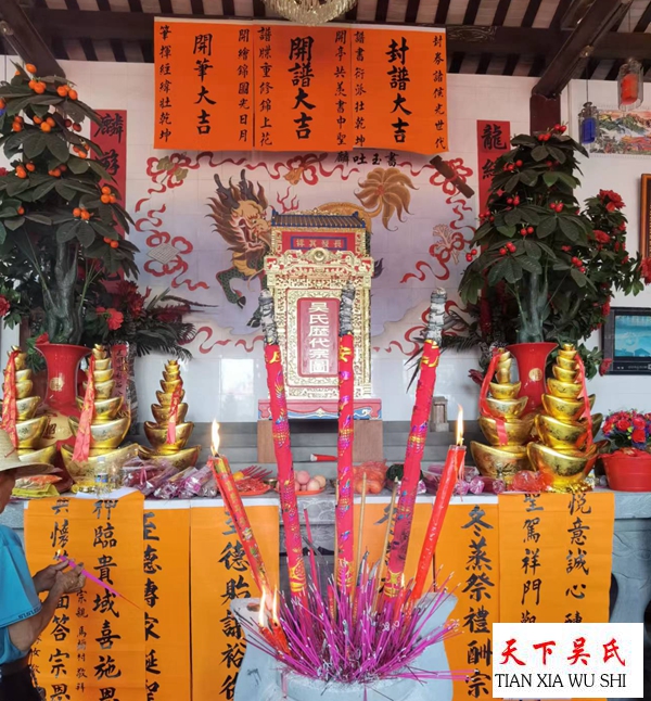 海口市吴贤秀文化研究会常务副会长吴富荣,名誉会长吴川富,副会长吴坤清,吴天庆,秘书长吴乾山。及吴崇胜,吴清良等应邀参加了南边村吴氏宗祠拜谱典礼仪式。