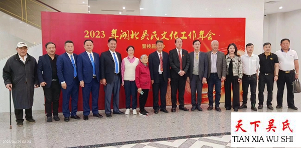天下吴氏网(湖北工作站吴志刚广东大潮山五市工作站吴汉龙报道)4月29日,湖北省2023年吴氏文化工作年会在武汉市武昌区帅府饭店隆重举行。