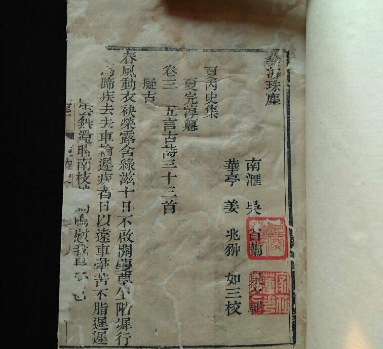 吴省兰,江苏南汇(今属上海)人。乾隆二十八年(1763)举人,三十九年(1774)任《四库全书》馆分校官,四十三年赐进士,四十五年授编修,历官文渊阁校理南书房直阁事、擢湖北、顺天、浙江提学使、工部侍郎,降补侍讲,升侍读学士。因任和珅师傅,遂附和权臣和珅,和珅当政时,他与兄吴省钦反拜和珅为师。嘉庆四年(1799)因和珅之事,降为编修,不久去职。自少博闻多学,喜聚书,搜罗文献勤奋。收藏颇丰且精,宋版书有数部,如《毛诗传笺》等。晚年归田后,更是以书史自娱,有藏书楼“听彝堂”。于嘉庆中辑刊《艺海珠尘》丛书8集,收书136种。由女婿钱熙辅辑壬、癸2集,收书42种。内容包括经学、小学、地理、掌故、笔记、小说、天文、历算、诗文等,绝大部分是宋代以后的著作。著有《听彝堂文稿》、《五代宫词》、《十国宫词》、《河源纪略》、《楚南随笔》、《楚峒志略》等。