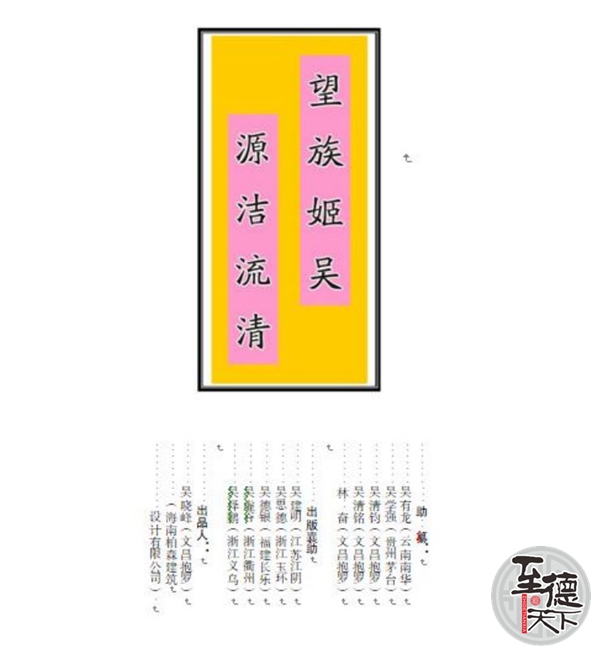 作者花了近八年时间搜集咨访考证,编纂而成的《中华姬吴谱纲》,而后又 经中国华侨出版社二年多四次审校,现正在出版。这部族谱不仅是至今笫一部以正式书号出版的族谱,也是一部获得专家较高赞誉,具有较高收蒇价值的族谱。