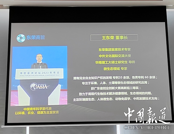 在2023年“青年科学家圆桌博鳌亚洲论坛”会议年会上,第八任联合国秘书长潘基文先生出席并致辞,王东荣代表东荣集团发言,道出自己不负昭华的历史使命“愿意为全球的生态环境保护作出自己的努力与贡献”!