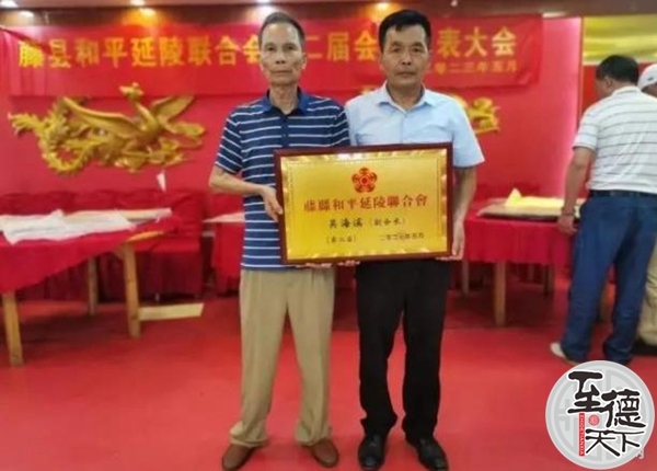 至德天下网讯5月18日,广西藤县和平延陵联合会第二届会员代表大会顺利召开,广西吴氏联谊会特别委派吴日胜副秘书长参加本次大会以表庆贺。