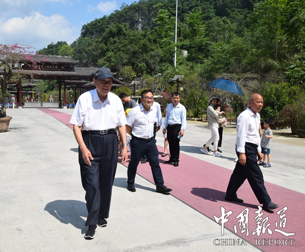 中国报道讯(通讯员 岑福山覃 源 韦举腾)6月3日,广西河池市政协原主席、市革命老区建设促进会原会长,市东巴凤(东兰县、巴马县、凤山县)区域一体化发展老干部顾问组组长覃绍明,冒着酷暑,来到广西东兰县国家4A级景区长乐宫检查指导工作。