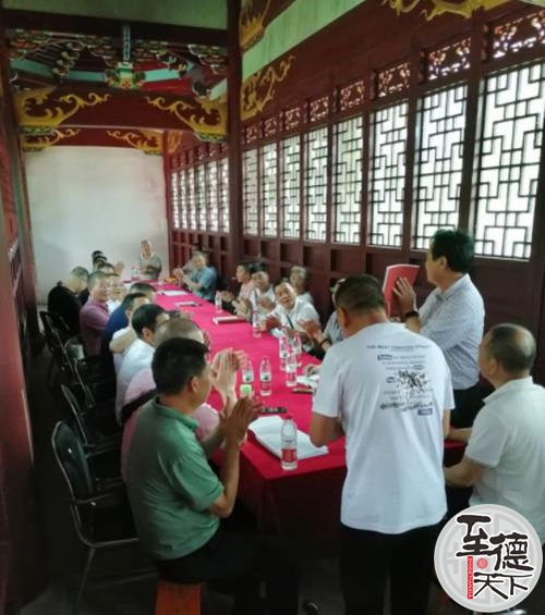 我们先到会议室开了一个欢迎短会,由吴久大执行会长主持会议。吴兆辉秘书长致欢迎词,并向永嘉上吴宗亲们介绍了吴畦纪念馆自2013年落成以来所开展的一系列工作情况,并希望宗亲们常来祖地走走,加强联系、互相学习、增进宗谊。上吴宗长吴大同也发表了热情洋溢的讲话,表示要感谢祖地宗亲的热情接待,今后更要互相往来,共同提升吴氏文化。并说:“今天,我们怀着感恩的心——感恩祖德,带上族谱,比对世系。我们都是吴畦公后裔,血脉相连,宗谊难忘。吴畦、吴畴公后裔出了那么多的进士,在浙南闽东是一面氏族文化的光辉旗帜,照耀着吴氏子孙……”