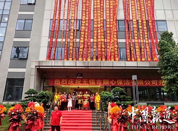 中国报道讯(吴蜀丰报道)6月30日,无锡市顺心保洁有限公司新綜合办公大楼举行乔迁之喜迎来八方宾客祝贺。