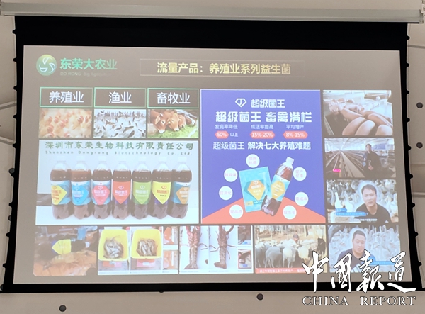 会上,合作单位、12个区县代表举行了签约仪式。参会部分代表台上现场体验人和动植物均可试喝的公司产品“超级菌王”。