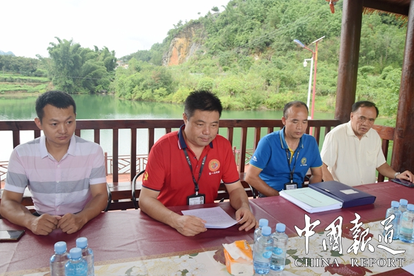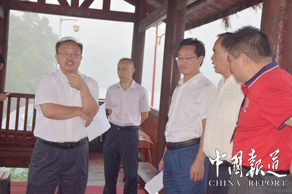 中国报道讯(通讯员岑福山 覃 源)8月7日,广西河池市人大常委会副主任韦桂元,冒雨来到东兰县坡豪湖国家湿地公园旅游码头检查指导工作,东兰县人大常委会副主任黄云及市、县有关部门和长乐镇领导陪同检查。