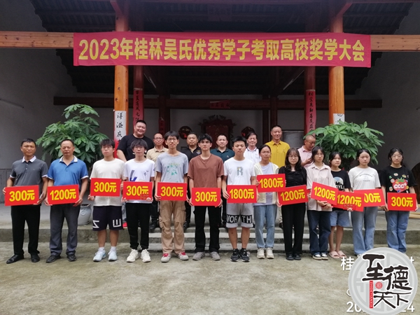至德天下网讯 袅袅秋风起,最美人间秋。8月24日,广西桂林吴氏经济文化发展联谊会在临桂两江白岩村吴氏宗祠举办“2023年桂林吴氏优秀学子考取高校奖学大会”,到场的有广西吴氏联谊会吴茂柏会长,桂林吴氏联谊会吴首发会长等领导。