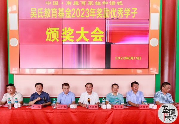 至德天下网讯(吴述东吴贻文赣州南康报道)春风得意马蹄疾,最是金榜题名时。2023年是中国传统农历的癸卯兔年,江西省赣州市南康区吴氏喜获一本以上的优秀学子36人,其中,考取985院校的4人、考取211院校的3人、其他院校的29人。为了弘扬吴氏文化,传承至德精神,有效激励吴氏学子勤学上进,不负韶华,在南康吴氏宗亲联谊会、吴氏教育基金会的精心安排下,2023年8月19日,在巍峨壮观的南康百家姓和谐城隆重召开了南康吴氏2023年高考优秀学子颁奖大会。