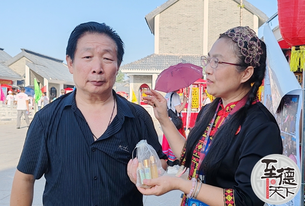 8月22日,在徐州沛县新易城举办的第六届月老节活动现场,在刘帮村非遗一条街产品展销,在刘帮雕塑像正前方风池先生显眼摊位上,李金倪正在为游客介绍她的“风池先生”和“凤池益寿堂”等相关产品。她还现场展示其绝活徒手给病人理疗,凡湿气重者经她纯手工按摩、刮砂等手法,在不吃药、不打针情况,下仅半小时后揭开超薄封朦后排除变色的毒素汉滴历历呈现,患者顿觉神清气爽。
