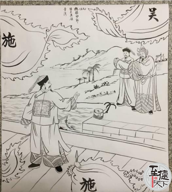 先是,当施琅督师与刘国轩(台湾)海战时,施自领中军,以吴英为左翼,以朱天贵为右翼(朱天贵阵亡),向澎湖进军。施琅督师奋进,双方在鏖战中,忽有刘军中一箭射来,正中琅目,几乎跌倒,幸经吴英一面保护主帅(施琅),一面指挥士兵力战,得挽危局。