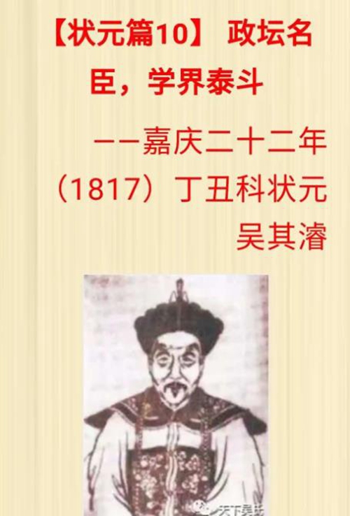 清嘉庆十五年中举人(1810年)。初以举人捐官为内阁中书,嘉庆二十二年(1817年)进士,殿试一甲一名,钦点状元,授翰林院修撰。两年后他受命主持广东乡试(正考官),时值其兄吴其彦为顺天府学政,兄弟二人同为学官,一时传为学界佳话。