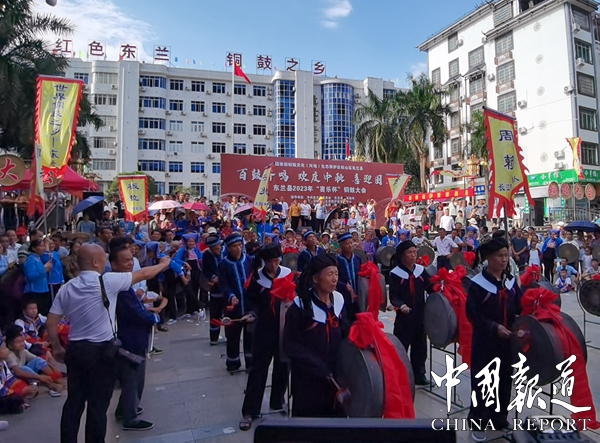 东兰县文化广场,人头攒动,歌声飞扬,东巴凤民族山歌邀请赛,精彩动听歌声,人群中不时爆发出阵阵掌声和欢呼声,游客体验了民族山歌的风彩。广场的百鼓齐鸣,欢度中秋,喜迊国庆,“喜乐杯”铜鼓大会,世界铜鼓之乡百面传世铜鼓登场,更是令人震撼。武篆镇乡村庆丰收,迎国庆,鱼肥稻香说丰年活动更是让游客流连忘返。丰富多彩的文旅活动,让游客在东兰度过了一段愉快、充实的假日时光,多彩活动更是为游客开启了壮乡诗意旅程。