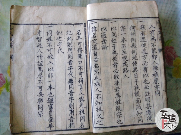 十六,諱名之道自古昭然也族人不知祖父之名耳可得闻口不得言及与先祖同名犯此則用同音字則用音相似文字代。