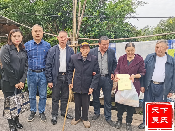 天下吴氏网讯(重庆璧山工作站吴波报道)10月22日,在重阳节来临之际,渝吴总会璧山分会在会长吴家顺,执行会长吴建军、吴礼学,常务副会长吴兆祥,副会长吴信才等秘书团队慰问部分九十岁以上吴氏老人获点赞。